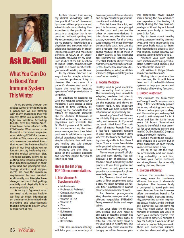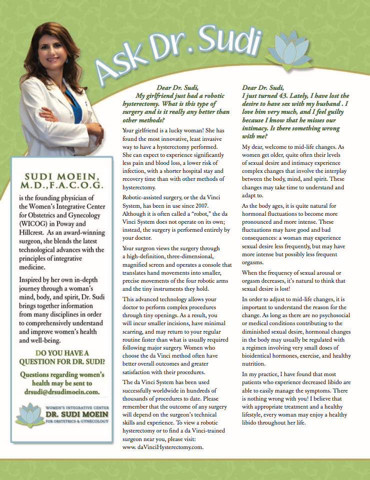 Dr. Sudi’s column in San Diego Women Magazine’s, “Ask Dr. Sudi.” You can view the article HERE.