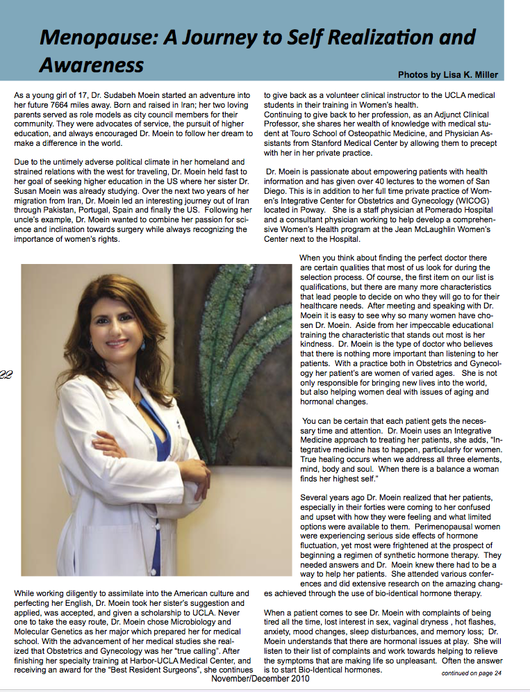 View Dr. Moein’s feature article in San Diego Woman, 2019. You can view the article HERE.